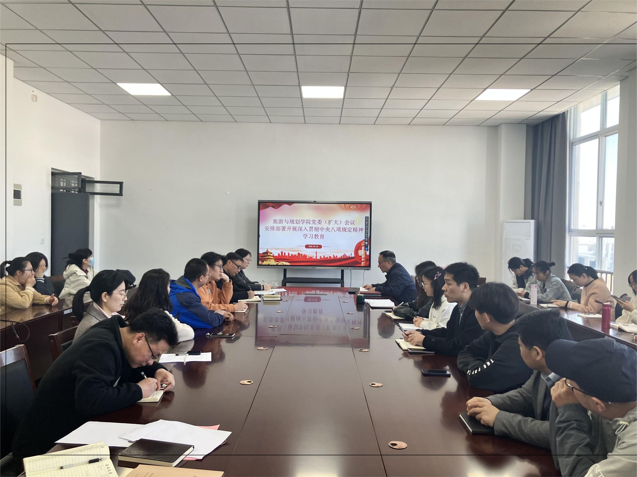 3月20日下午,威廉希尔足球网召开党委(扩大)会议,安排部署开展深入贯彻中央八项规定精神学习教育。会议由学院党委书记李玉良主持,学院领导班子成员、科级干部,以及全体教师党员和学生党员参会。